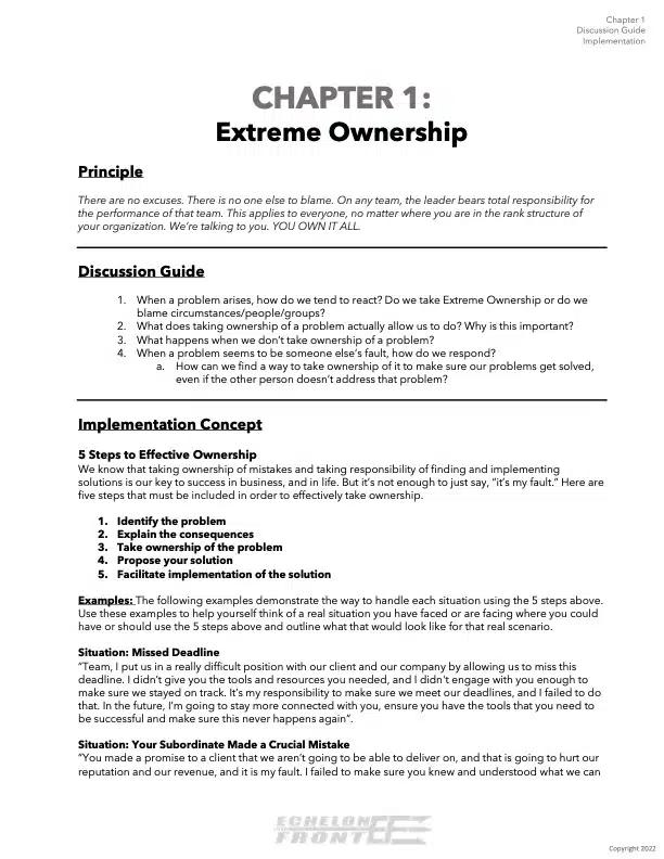 - Watch and listen to the course module for that chapter on the Extreme Ownership Academy